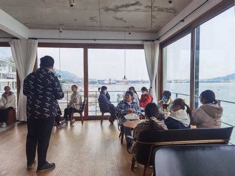 青岛朴宿文旅集团总监林皓然对接待了师生一行。他带领师生们参观民宿的全貌,耐心讲解了民宿的概况,详细的阐释了民宿设计的初衷及经营理念,为师生带来了一场唯美的视觉和听觉盛宴。