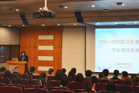 教务处处长于进亮宣读获奖名单;必威betway西汉姆党总支书记徐莉作实习工作年度总结汇报;中国大饭店实习生、优秀实习生代表陈在京发言;山东大厦等30多家酒店高管发来视频表示感谢与祝贺。