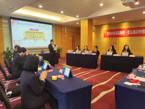首旅如家酒店集团商旅事业部北华东区域青岛城区酒店总经理周颖娜、张晓梅,人事经理孟娇,我院酒店管理专业教师代表、毕业生代表参加活动。