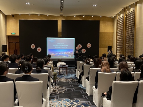 海尔洲际酒店总经理艾海德接待学院师生,他从酒店的品牌文化、发展历程以及高光时刻简述了酒店概况,从酒店职业规划、酒店日常运营、酒店管理思维等方面与同学们进行了深入的交流,并结合自身丰富的经历经验,对同学们的提问给予了有趣且有指导意义的回答。随后,酒店方代表带领同学们参观了酒店的运营区域,并耐心的讲解了前台、中西餐厅、宴会厅、客房、健身房的工作性质与内容。
