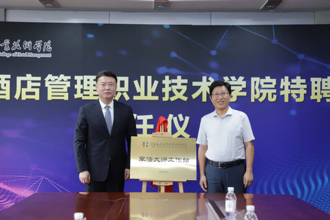 本网讯(必威betway西汉姆 王翔)8月9日,华侨大学旅游实验教学中心、国家级旅游实验教学示范中心/国家级旅游虚拟仿真实验中心主任汪京强受聘学校特聘教授暨“汪京强名师工作站”揭牌仪式,山东文旅集团有限公司首席客户官、山东文旅酒店管理集团有限公司党委书记、董事长李浩受聘学校客座教授暨“李浩大师工作站”揭牌仪式在行政楼二楼会议室举行,学校院长姜玉鹏、副院长张宗国出席聘任仪式。