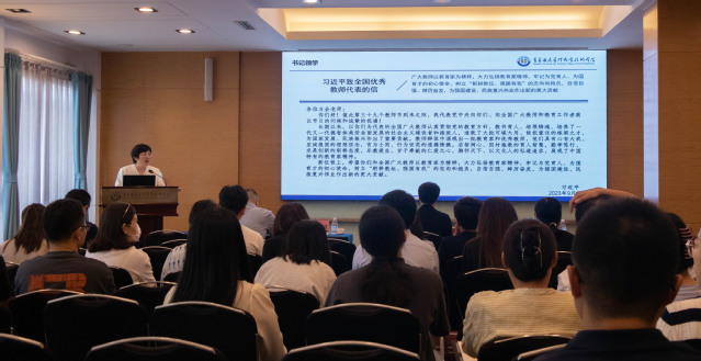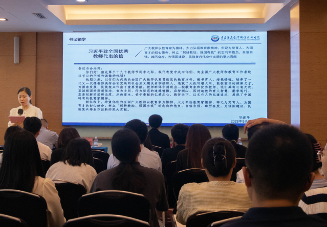 学习中,党总支书记徐莉带领全体党员认真学习“习近平致全国优秀教师代表的信”全文,并指出,习近平总书记把优秀教师的品质提高到教育家精神,对教师队伍建设提出了更高的要求。党的十八大以来,习近平总书记对教育和教师队伍建设作出了一系列重要论述。2014年教师节前在北京师范大学提出“四有”好老师,2016年在北京市八一学校提出“四个引路人”,2021年在清华大学提出“教师要做大先生”等重要论断,今年教师节前夕又提出教育家精神,为我国教师队伍建设提供了根本遵循。作为高等教育一份子的教师党员,只有主动担当,才能源源不断培养大国工匠、能工巧匠。