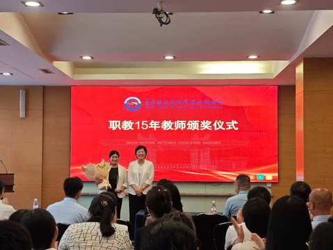 会上,徐莉为职教15周年教师吕娟颁发了纪念奖杯和鲜花。吕娟十五年如一日,执教240个班级、培养学生近万名,始终践行“立德树人”的根本任务。她的执教经历让在场教师深切感受到了教育工作的价值与意义。