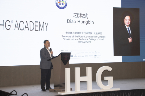 刁洪斌在致辞中回顾了校企双方自2013年携手同行、共同成长的不凡历程,对洲际酒店集团长期以来的信任与支持表示衷心感谢。他高度肯定了双方在人才培养、课程建设、学徒制试点、师资团队打造等方面取得的一系列标志性成果,并指出这些成绩是校企深度合作的有力见证。他强调,恰逢学校八十周年华诞,学校将始终秉持“企业出题、校企共答、市场阅卷”的产教融合理念,继续深化与洲际酒店集团的战略协作,共同为酒店行业输送更多高素质、复合型专业人才。他勉励洲际班的同学们珍惜宝贵机遇,锤炼扎实本领,早日成长为推动行业发展的中坚力量。